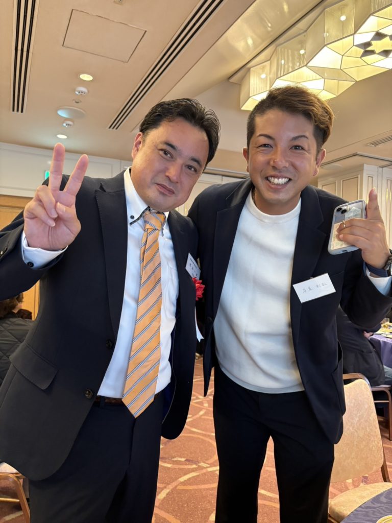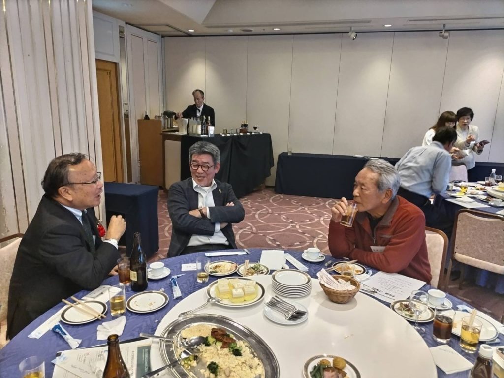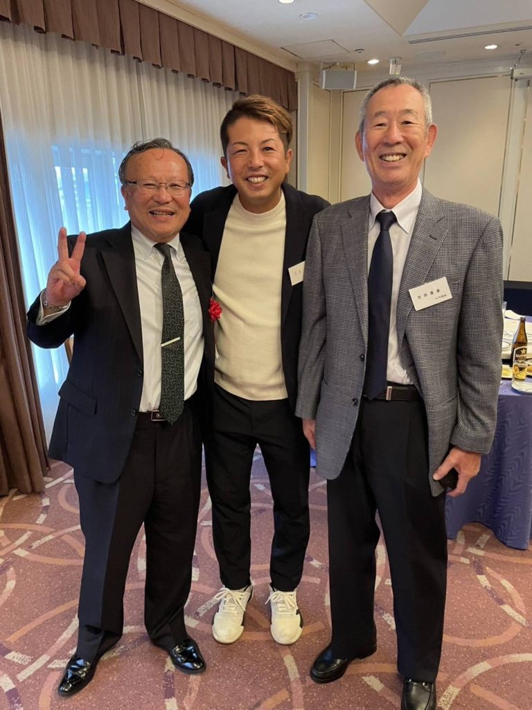 参加者の中には、野球一筋に生き抜いてこられた野球部のレジェンド、元千葉ロッテマリーンズの池田重喜さん、数年前に西武ライオンズを引退された元プロ野球選手の岩尾利弘さんもおられ、ご挨拶をしてくださいました。岩尾さんは、朝生会長が津久見高校の野球部長時代の教え子とのことです。